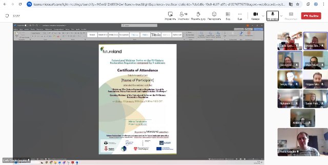 During the meeting, the participants discussed the results of the previous webinar, agreed on the program of the next event, which will be held on April 24, 2026, and also outlined the further directions of the project's development. Special attention was paid to the development of microcredit educational programs, the creation of a massive open online course (MOOC), preparation to a reflective workshop scheduled for June 2026, as well as conducting a competency analysis in accordance with the provisions of the Law on the Restoration of Nature.