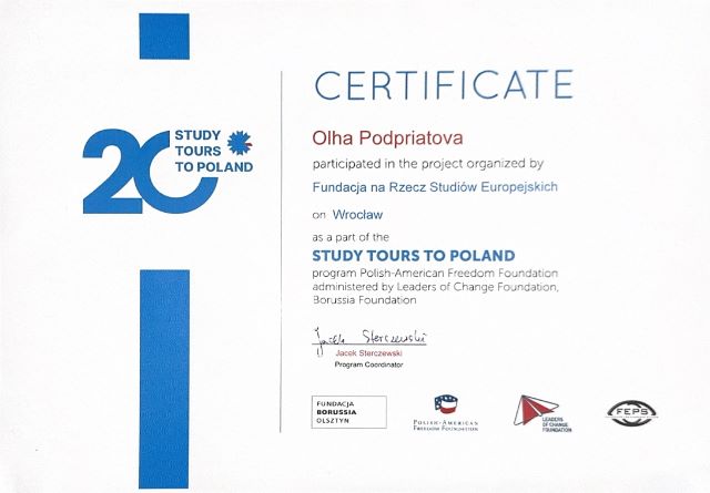 Summing up, Olha noted that the Study Tour to Poland was a valuable opportunity not only to gain practical knowledge, but also to find new friends, make important acquaintances, and feel the atmosphere of an international youth community.