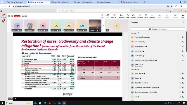 During the webinar Outi Ala-Honkola, Senior Specialist of the Ministry of the Environment, Santtu Kareksela, Restoration and Nature Management Service Owner, Metsähallitus, Parks & Wildlife Finland, Ninni Saarinen, Nature Conservation Specialist & LUMO Programme Coordinator, Economic Development Centre revealed the implementation of the EU Regulation on nature restoration in Finland and Rauli Perkiö, Nature Management Specialist, forest company Tomator, Essi Arminen, Junior Specialist at Akordi, Anna Laine-Petäjäkangas, Assistant Professor of Restoration ecology, University of Eastern Finland, and Sari Koivula Forest and Climate Expert, Regional Council of North Carelia described the practical aspects of forest and peatland restoration in Finland.