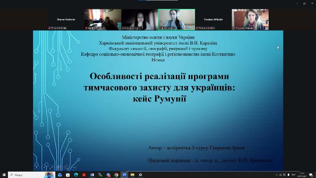 Безпосередню участь у конференції взяли понад 40 учасників, зокрема з вітчизняних та закордонних закладів вищої освіти: Харківського національного університету імені В.Н. Каразіна, Ніжинського державного університету імені Миколи Гоголя, Київського національного університету імені Тараса Шевченка, Львівського національного університету імені Івана Франка, Сумського державного педагогічного університету імені А.С. Макаренка, Полтавського національного університету імені В.Г. Короленка, Херсонського державного університету, Центрально-українського державного університету імені Володимира Винниченка (м. Кропивницький), Волинського національного університету імені Лесі Українки (м. Луцьк), Університету Бабеш-Бойяї (Babes-Bolyai University), Університету Александру Іоан Кузи у Яссах (Alexandru Ioan Cuza University of Iasi) (Румунія) тощо. На конференції прозвучали доповіді, що стосувалися актуальних проблем соціально-економічного регіонального розвитку, питань досліджень міст, туризму, соціальної інфраструктури, міграційних потоків, регіональної ідентичності в Україні та інших країн, зокрема Румунії. Доповіді учасників конференції викликали зацікавленість серед присутніх та жваву дискусію.