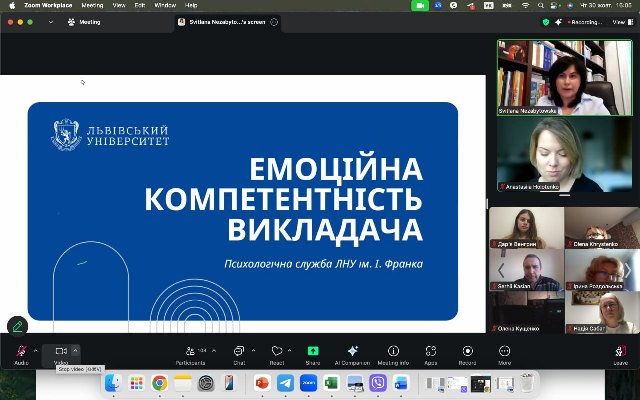 30 жовтня 2025 р. науково-педагогічні працівники і аспіранти кафедри соціально-економічної географії і регіонознавства імені Костянтина Нємця взяли участь у вебінарі «Емоційна компетентність викладача», спікеркою якого була керівниця психологічної служби Львівського національного університету імені Івана Франка Світлана Незабитовська.