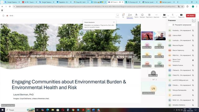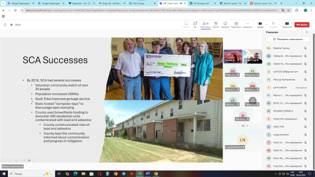 • Laurel Berman (Університет штату Іллінойс в Чікаго / Університет ДеПоль / University of Illinois at Chicago/DePaul University, США) – Risk Assessment Approaches to Site Remediation: KI Sawyer former military brownfield / Підходи до оцінки ризиків для відновлення ділянки: занедбаний колишній військовий об'єкт К. І. Сойєра.