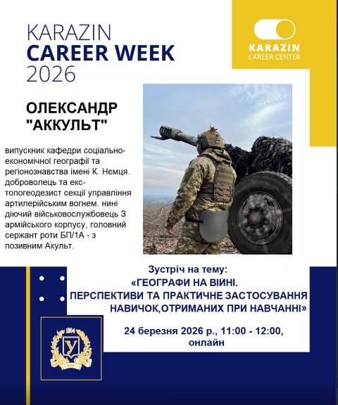 24 березня 2026 р. відбулася зустріч із випускником кафедри соціально-економічної географії і регіонознавства імені Костянтина Нємця, у межах "Тижня кар’єри" Харківського національного університету імені В. Н. Каразіна.