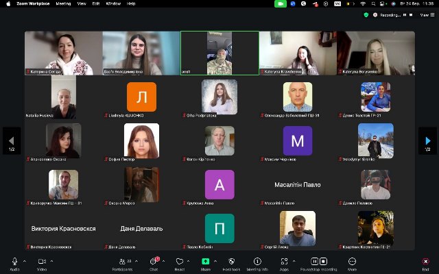 Спікером зустрічі став Олександр (позивний «Акульт») - випускник кафедри соціально-економічної географії і регіонознавства імені Костянтина Нємця, доброволець, екс-топогеодезист секції управління артилерійським вогнем, а нині військовослужбовець 3 армійського корпусу, головний сержант роти БПЛА. У межах теми «Географи на війні. Перспективи та практичне застосування навичок» Олександр поділився практичним досвідом застосування географії у військовій справі та продемострував, як фахові знання допомагають у виконанні бойових завдань.