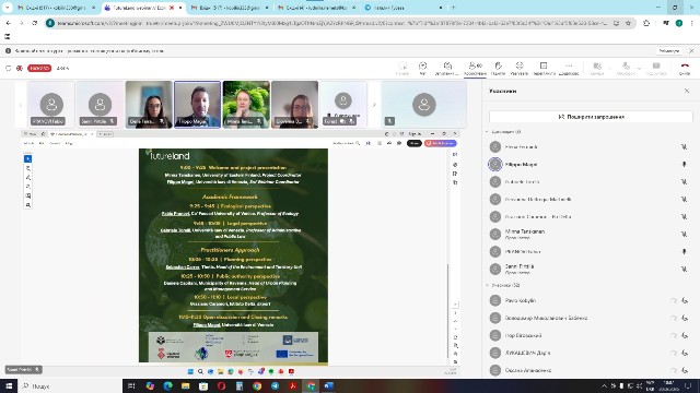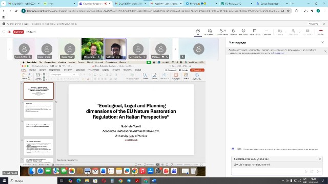 20 березня 2026 р. у рамках проєкту «Nature Restoration – challenges and opportunities for future landscape specialists» (FutureLand) («Відновлення природи – виклики та можливості для майбутніх фахівців з ландшафтнознавства») за програмою Erasmus+ Cooperation Partnerships for Higher Education (KA220-HED) відбувся черговий вебінар на тему: «Екологічні, правові та планувальні аспекти Регламенту ЄС про відновлення природи: італійська перспектива» / «Ecological, Legal and Planning dimensions of the EU Nature Restoration Regulation: An Italian Perspective», в якому взяли участь понад 100 студентів, аспірантів, науковців, представників різних підприємств, організацій з 9 країн світу.