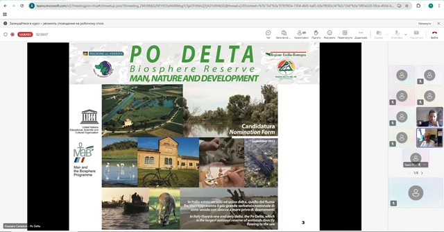Під час роботи вебінару проф. Fabio Pranovi (Університет Ка Фоскарі у Венеції / Caʼ Foscari University of Venice), проф. Gabriele Torelli (Іуавський університет у Венеції / Università Iuav di Venezia), Sebastian Carrer (Тетіс / Thetis), Daniele Capitani (Муніципалітет Равенни / Municipality of Ravenna), Graziano Caramori (Інститут Дельта / Istituto Delta) у своїх виступах розкрили екологічні, правові та планувальні аспекти відновлення природи з особливим акцентом на прибережне та лагунне середовище, охарактеризували дельту річки По (Італія).