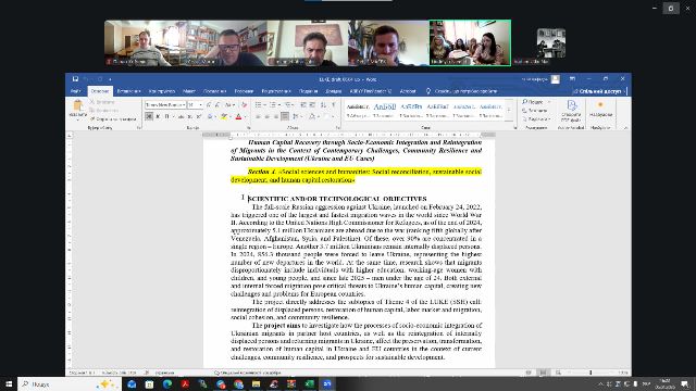 6 квітня 2026 року викладачі кафедри соціально-економічної географії і регіонознавства імені Костянтина Нємця взяли участь у робочій зустрічі міжнародного консорціуму, присвяченій підготовці потенційного науково-дослідного проєкту на тему: «Відновлення людського капіталу шляхом соціально-економічної інтеграції та реінтеграції мігрантів у контексті сучасних викликів, стійкості громад та перспектив сталого розвитку (на прикладі України та ЄС)» / “Human Capital Recovery through Socio-Economic Integration and Reintegration of Migrants in the Context of Modern Challenges, Community Resilience and Prospects for Sustainable Development (Case Studies of Ukraine and the EU)”. Проєкт планується подати в межах LUKE Joint Call for projects in the field of research and innovation, що реалізується у рамках міжнародної ініціативи «Linking Ukraine to the European Research Area – Joint Funding and Capacity Building Platform for Enhanced Research and Innovation Cooperation (LUKE)», яка об’єднує партнерські установи з України, Австрії, Німеччини, Данії та Литви.